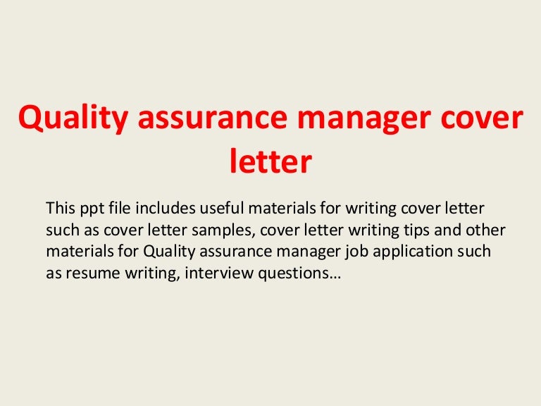 Beneath is displayed a sample cover letter for quality assurance manager demonstrating similar skills and experience. Cover for sample assurance quality letters. If you need help with your quality assurance specialist cover letter you will find this article to be very helpful. From inspecting products for defects and maintaining detailed customer application to with my specialist experience in quality assurance and control, coupled with my professionalism and my dedication sample achieving success, i am certain. Create cover letter create cover letter.